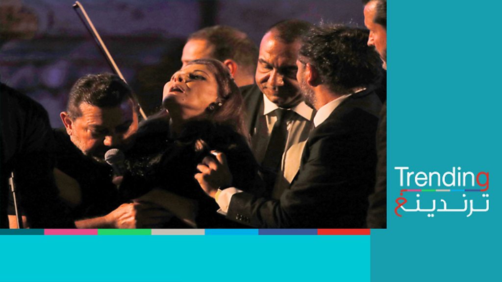 ماجدة الرومي تفقد توازنها على مسرح مهرجان جرش بالأردن.